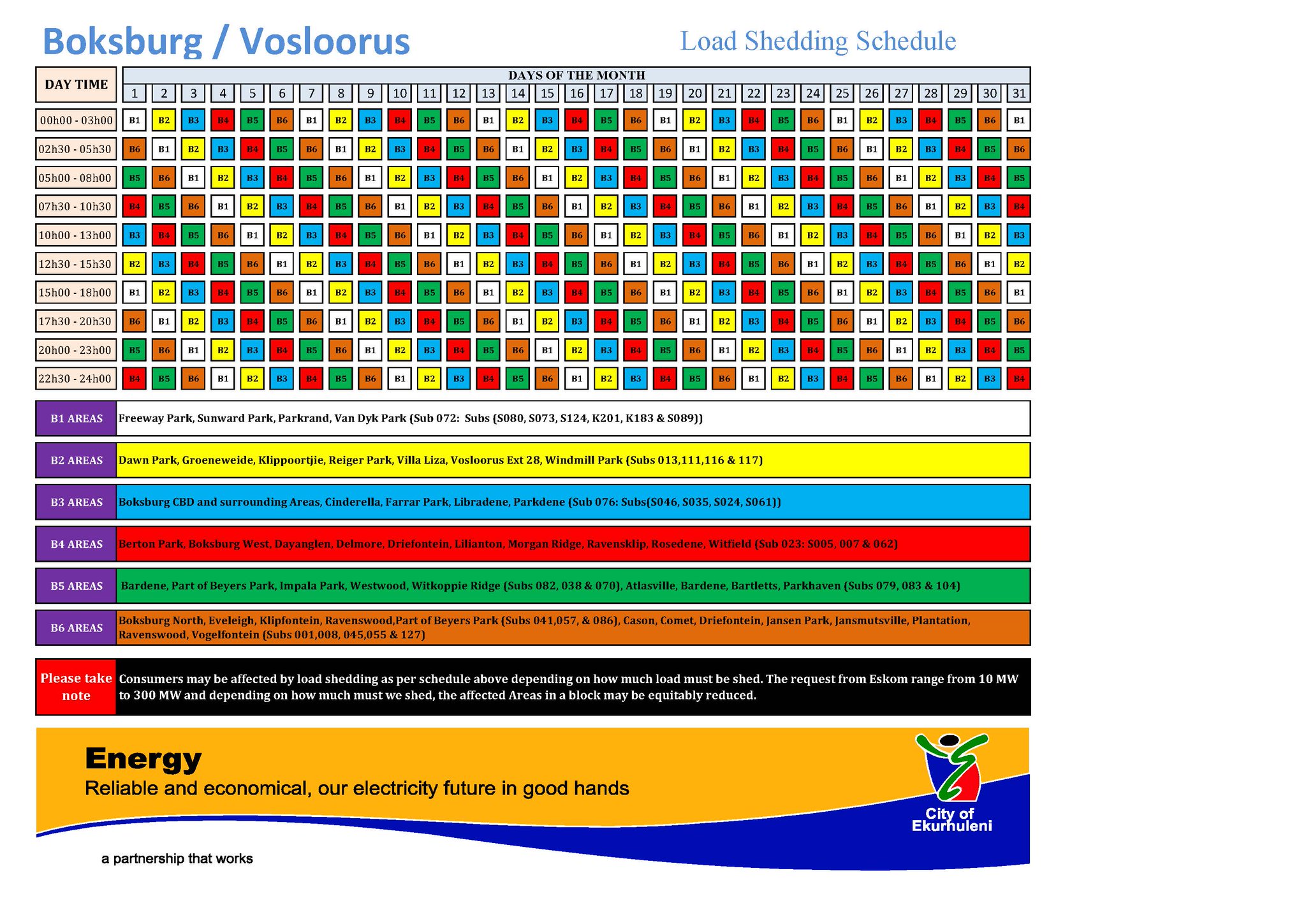 Please take consumers may be affected by load shedding as per schedule above depending on how much load must be shed.